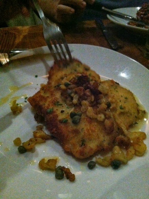 We decided to start with the Nightly Bruchetta ($9). On this occasion, it was a creamy but fresh tasting combo of tomatoes, peppers, and basil. The picture doesn't look too appetizing, and we were indeed worried--it looks a bit like cream of chicken soup. But it was cold, and tasted of tomatoes. It was a really odd dichotomy, but ended up being completely addictive. My one complaint here was that the server told us he could bring us more foccacia for dipping if we needed it; he neglected to mention we would be charged for that. Was I shocked to see a charge? Not at all, but I would have appreciated being told that when he offered it.